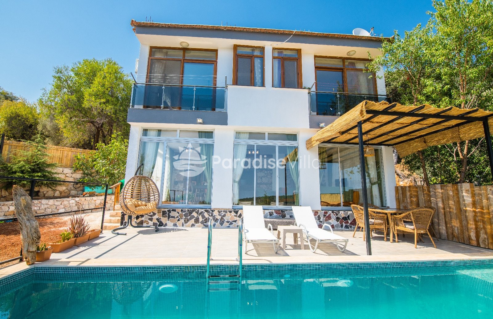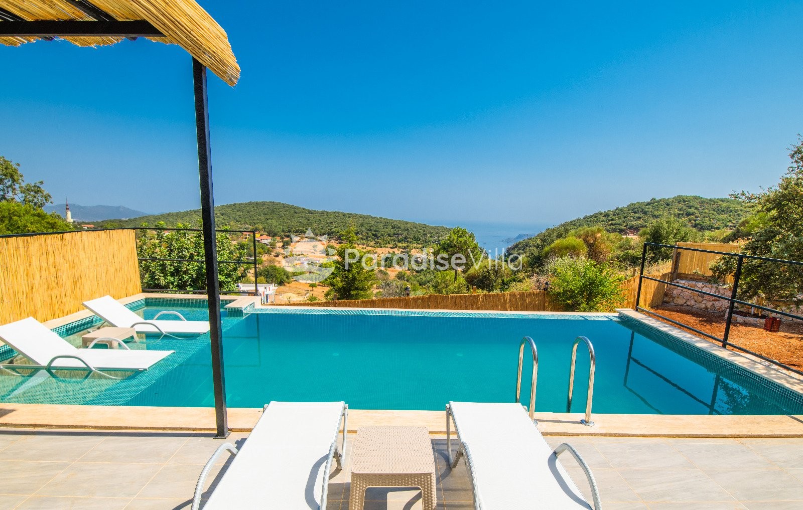 Bedroom 3: 2 single beds, wardrobe, bedside table, air conditioning, bathroom (upper floor)