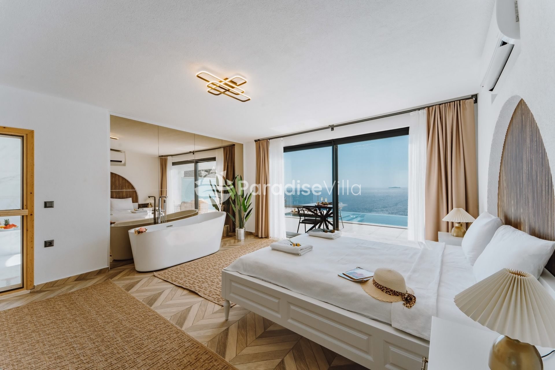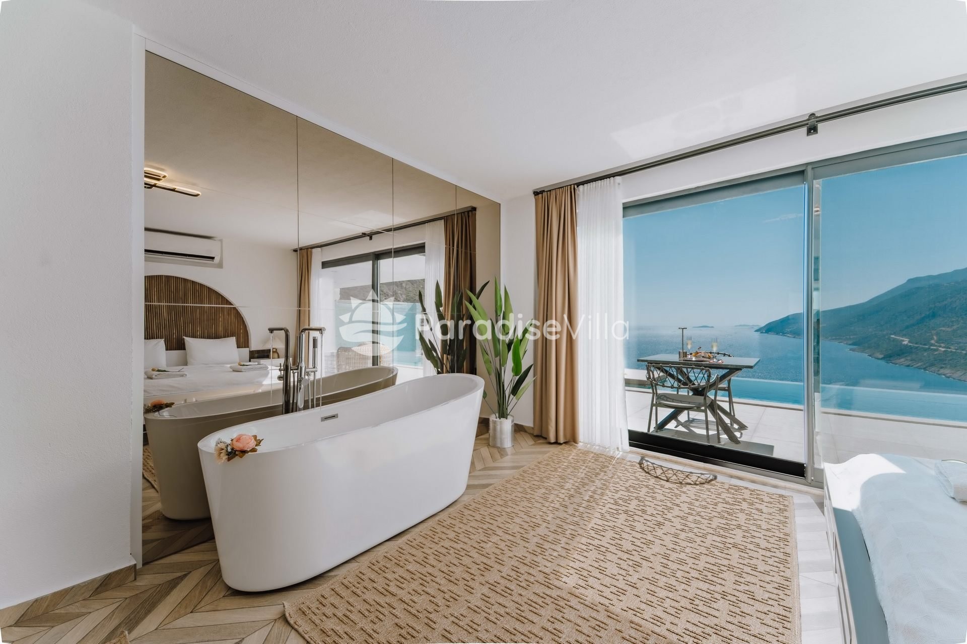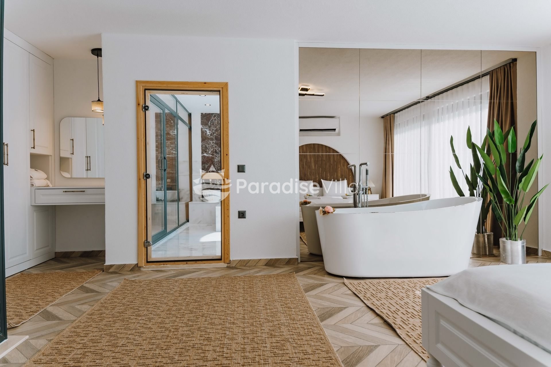 1.Yatak Odası:1 çift kişilik yatak, elbise dolabı, komidin, klima, makyaj masası, banyo, küvet