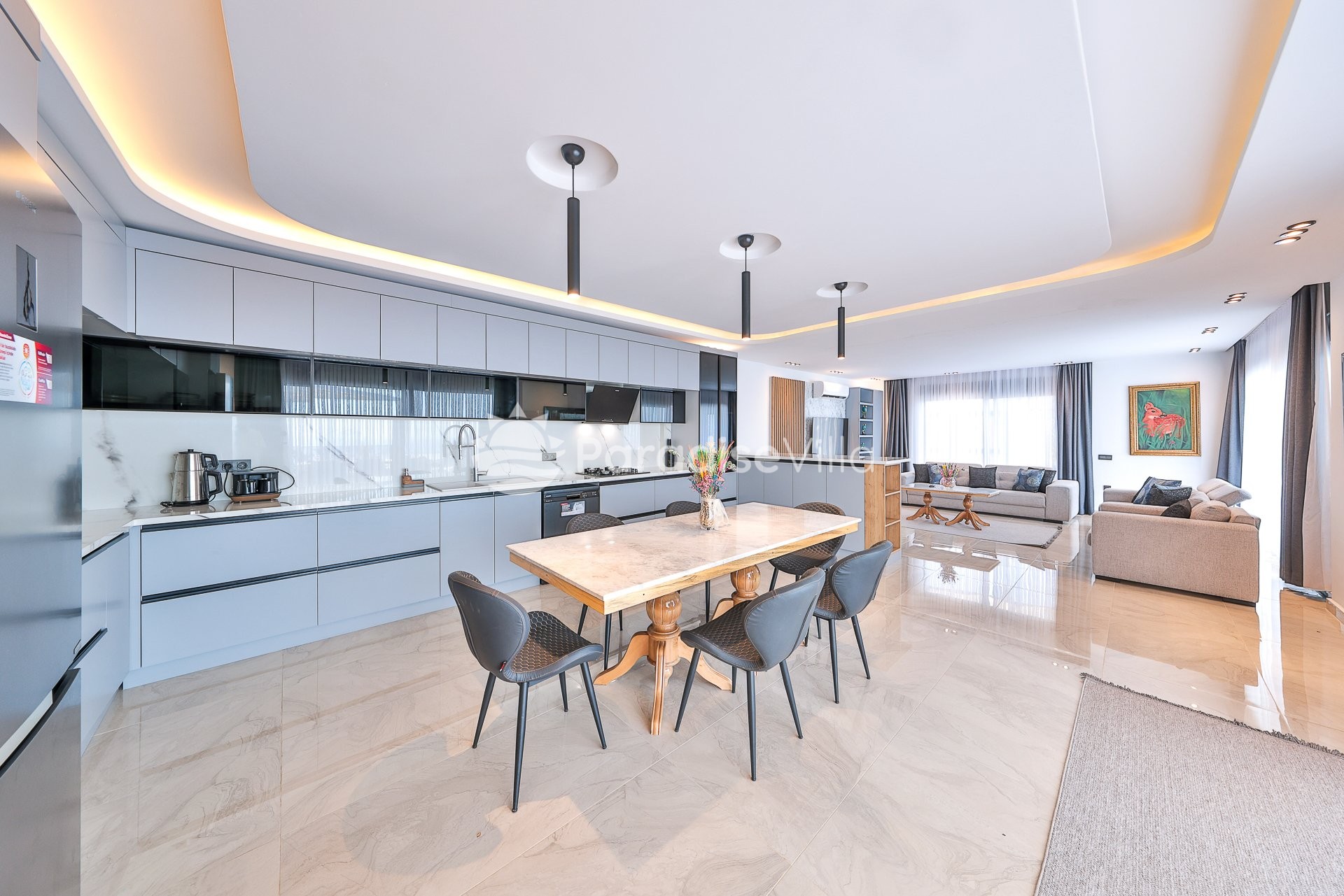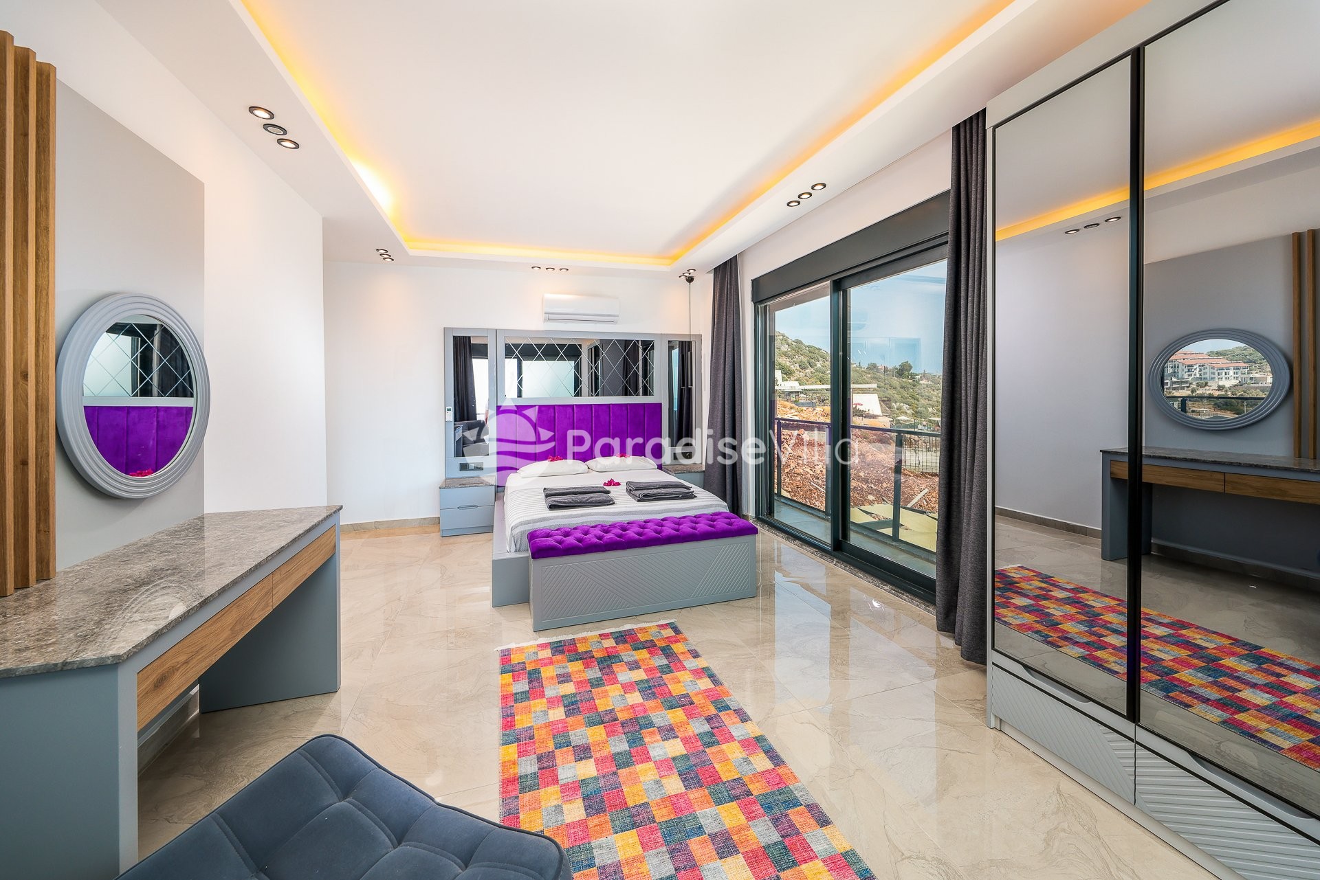 3. Yatak Odası: 1 çift kişilik yatak, elbise dolabı, komodin, klima, banyo (orta katta)