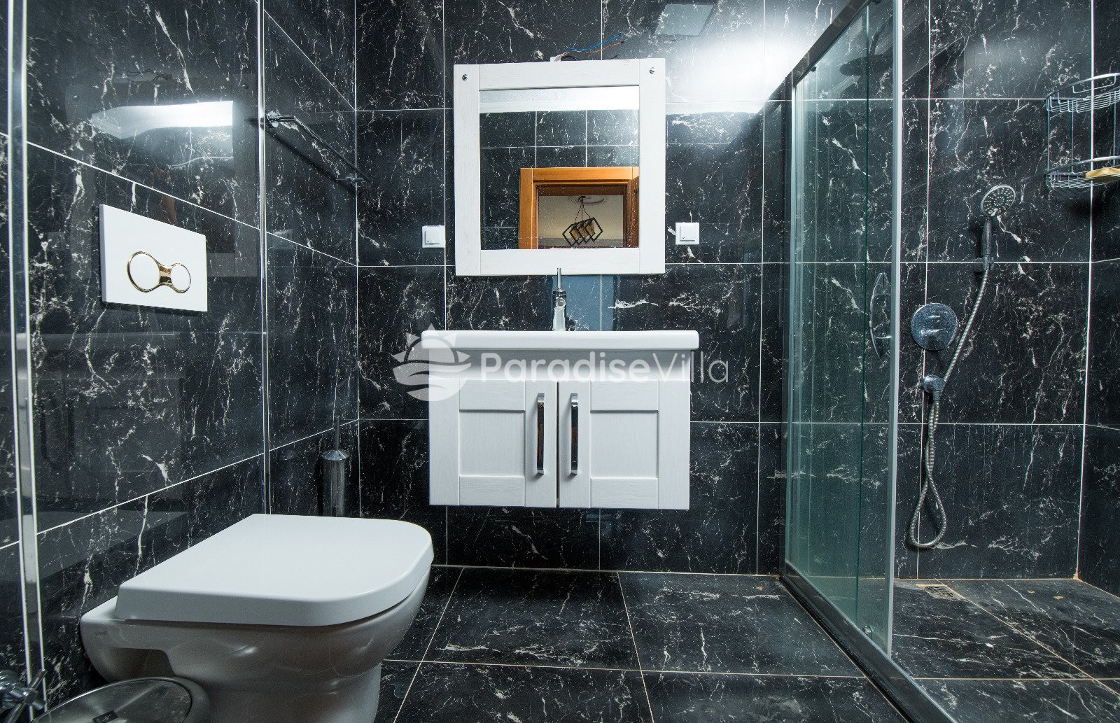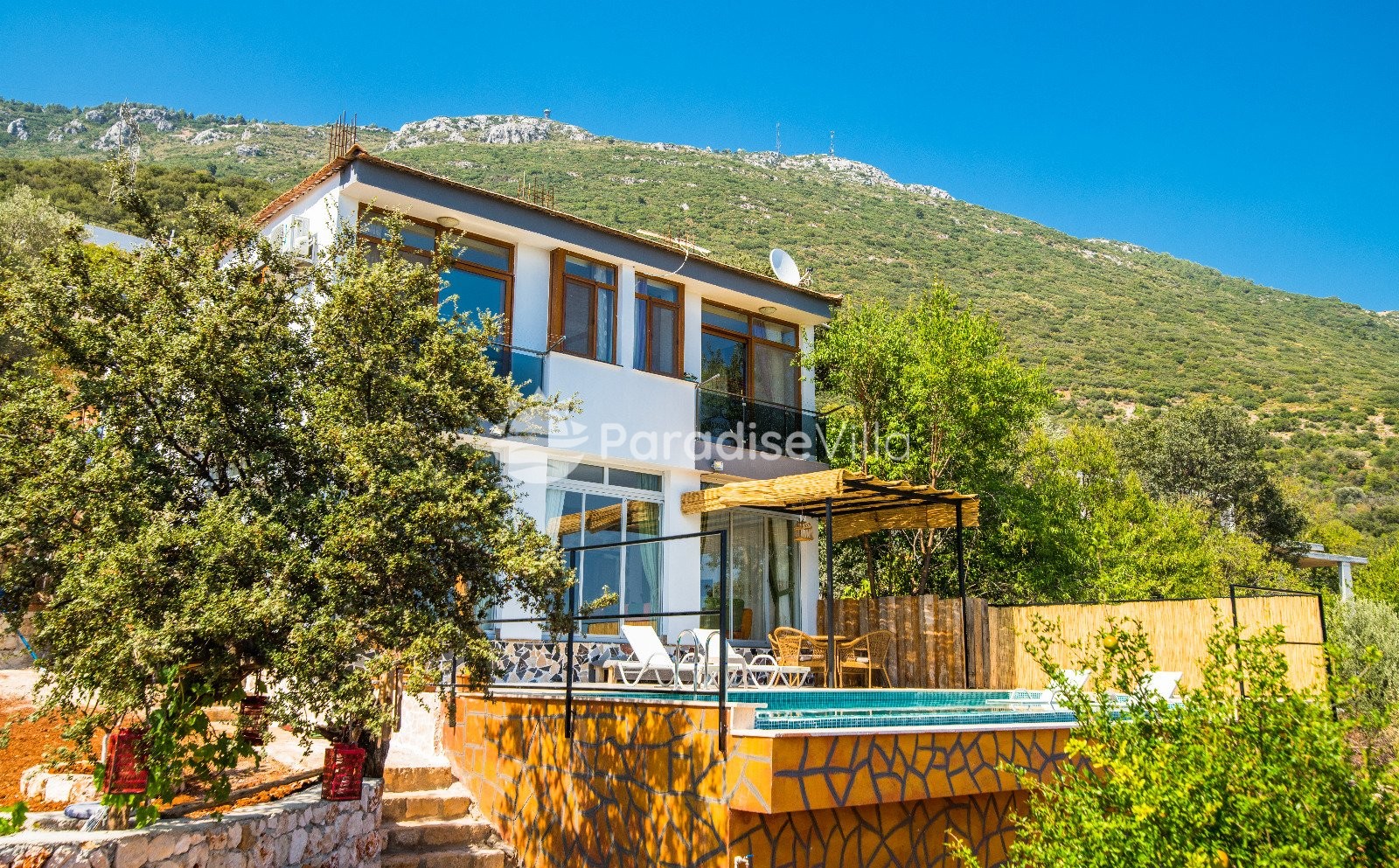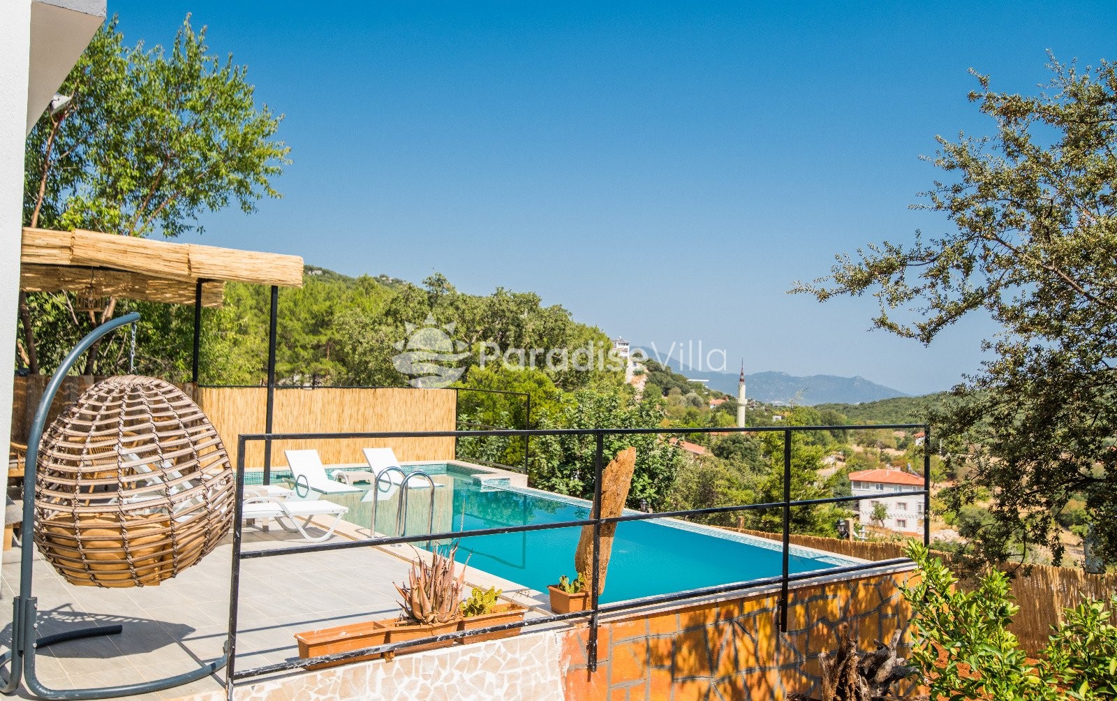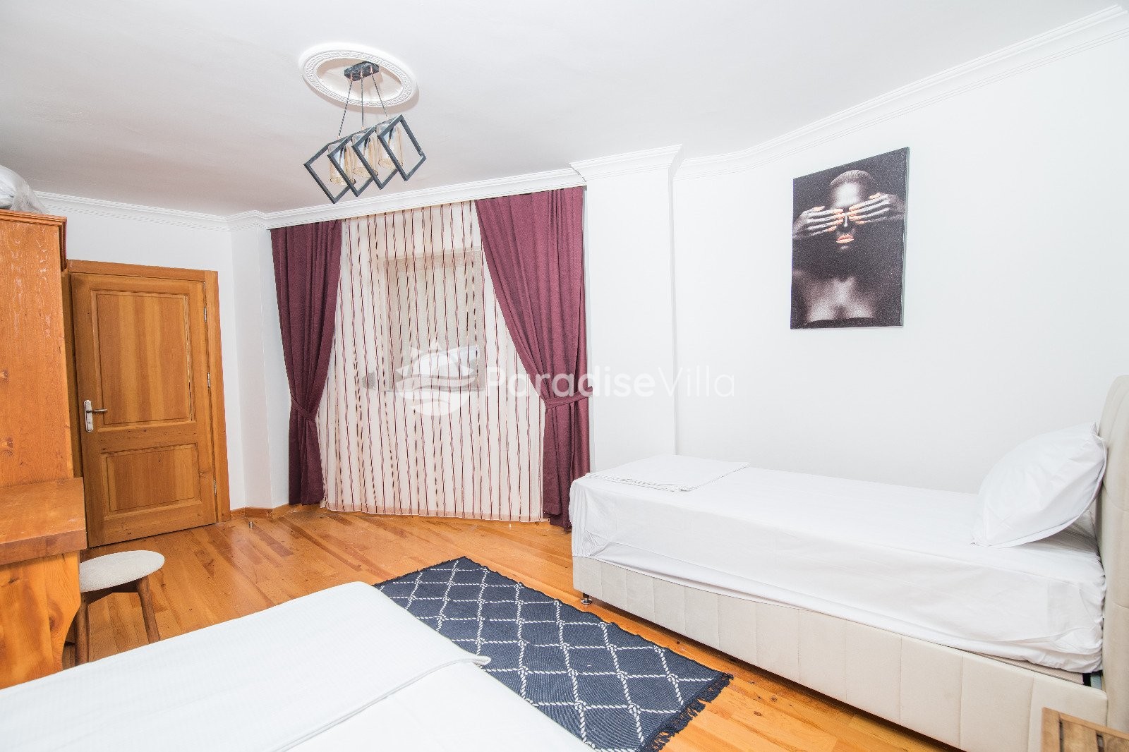 Bedroom 3: 2 single beds, wardrobe, bedside table, air conditioning, bathroom (upper floor)
