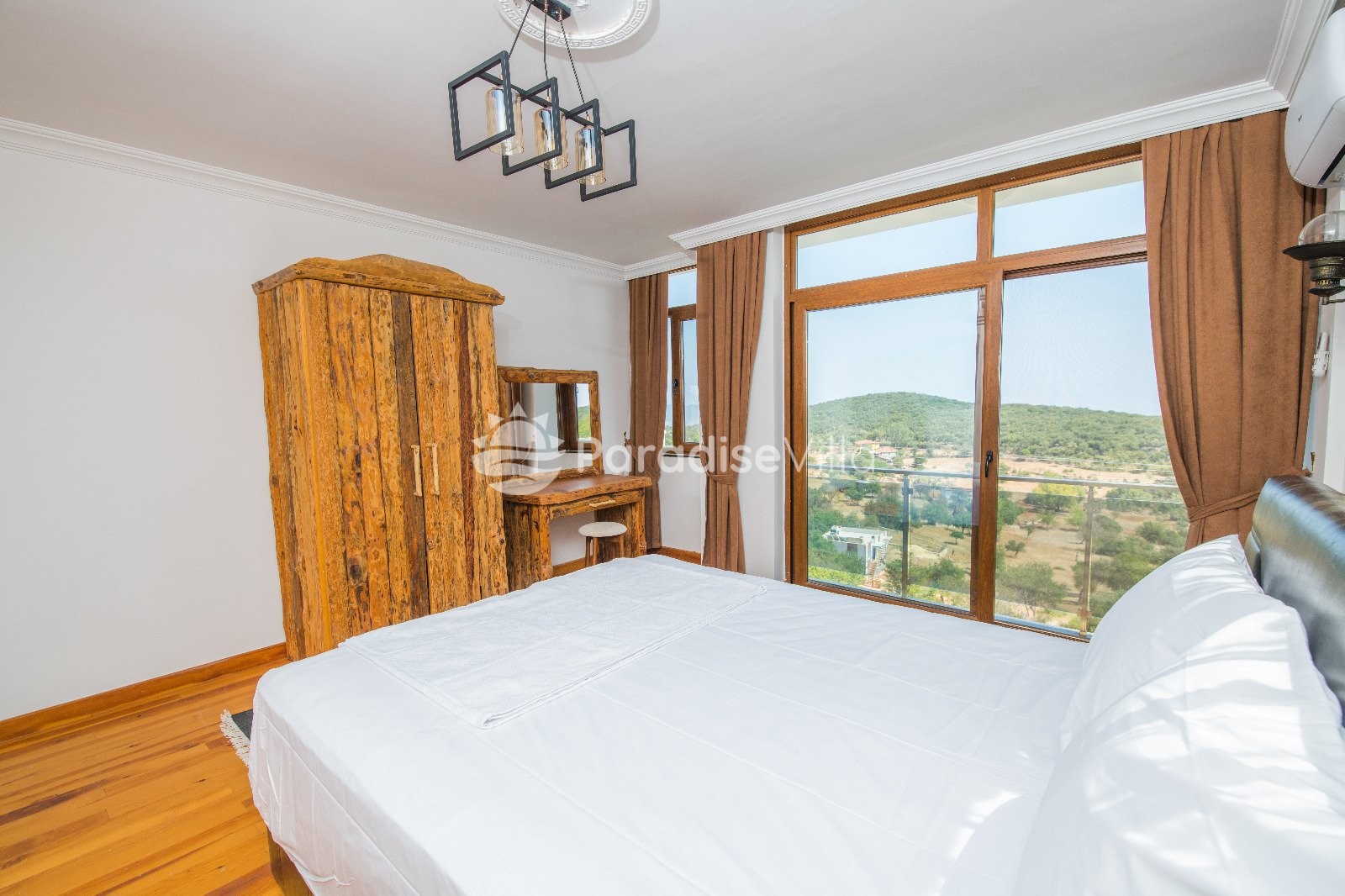 Bedroom 1: 1 double bed, wardrobe, bedside table, air conditioning, bathroom (upper floor)