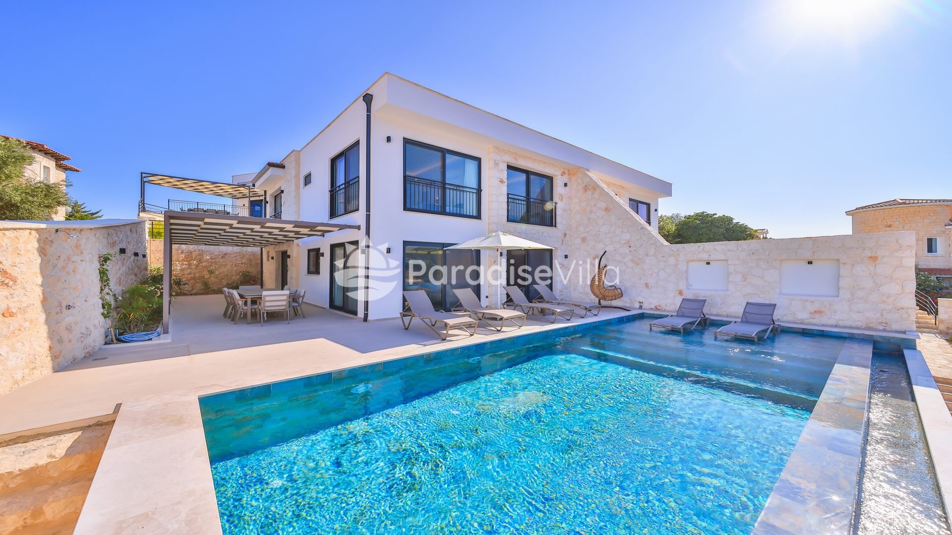 Villa Four 3; Kaş’ın eşsiz doğa ve deniz manzarasına hakim bu özel villa, size hem huzur hem de ayrıcalıklı bir tatil deneyimi sunar. 4 yatak odası ve geniş yaşam alanlarıyla kalabalık aileler ve arkadaş grupları için ideal olan villamızda özel yüzme havuzu, konforlu oturma alanları ve tam donanımlı mutfak bulunmaktadır. Gün doğumunda manzaraya karşı kahvenizi yudumlayabilir, gün boyunca tamamen size ait havuzda keyifli anlar yaşayabilirsiniz. Sessiz ve sakin konumu sayesinde kalabalıktan uzaklaşırken, Kaş merkez ve plajlara kısa sürede ulaşabilirsiniz.