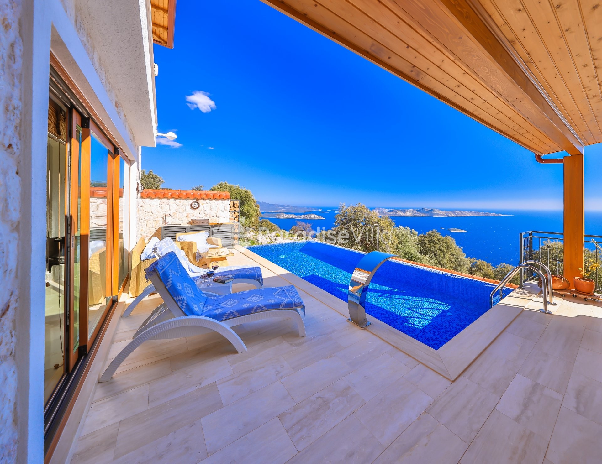 Yayla konumunda bulunmasına rağmen, geniş açıdan sunulan muhteşem deniz ve doğa manzarasıyla misafirlerine benzersiz bir deneyim sunar. Villaya ulaşıp kapısından içeri adım attığınız anda, doğanın ve mavinin enerjisinin adeta yaşam alanlarına dolduğunu hissedersiniz.