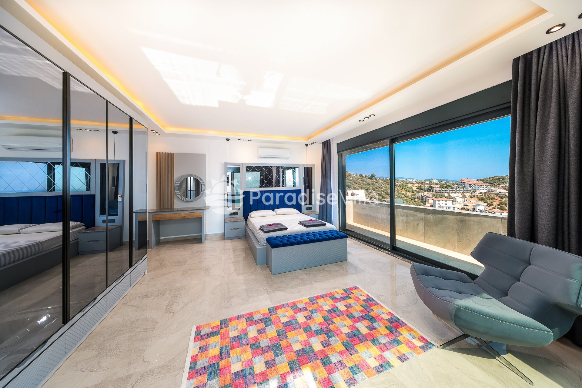 5. Yatak Odası: 1 çift kişilik yatak, elbise dolabı, komodin, klima, banyo (üst katta)
