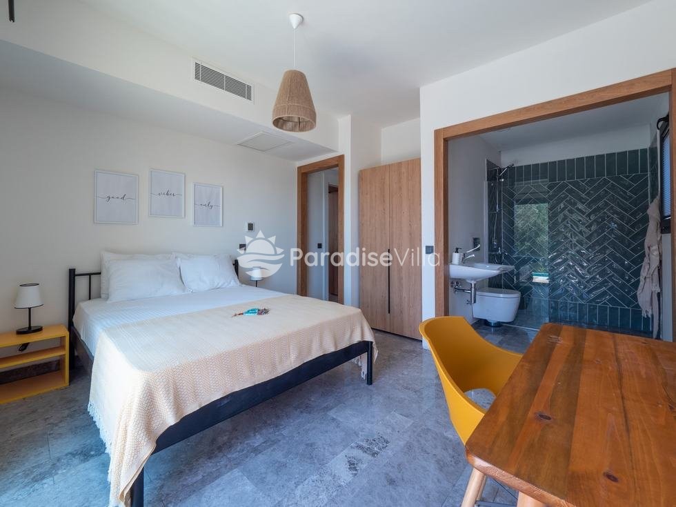 5. Yatak Odası: 1 çift kişilik yatak, elbise dolabı, komidin, klima, banyo