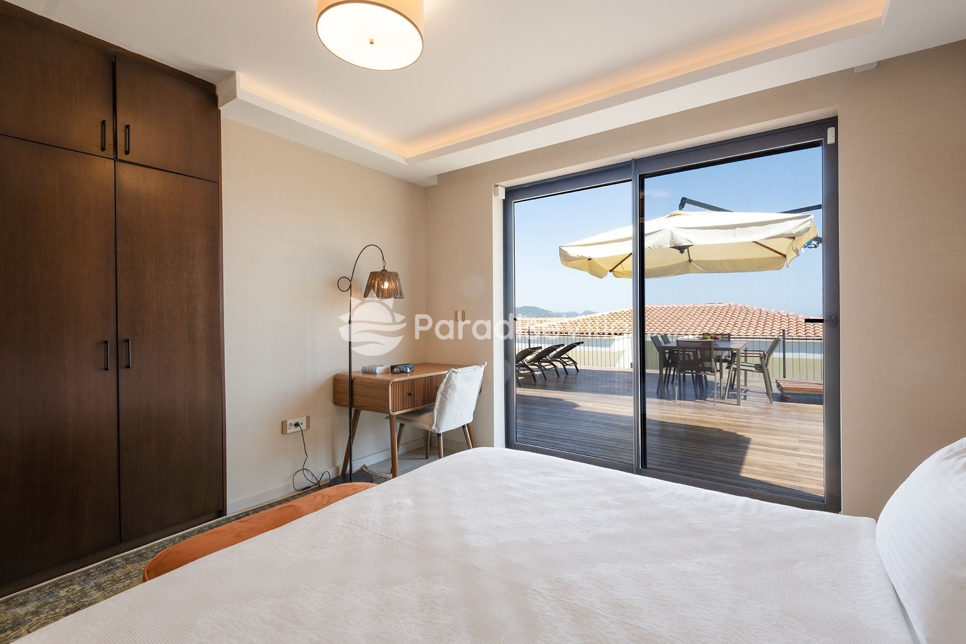 3. Yatak Odası: 1 çift kişilik yatak, elbise dolabı, komodin, klima, banyo, makyaj masası