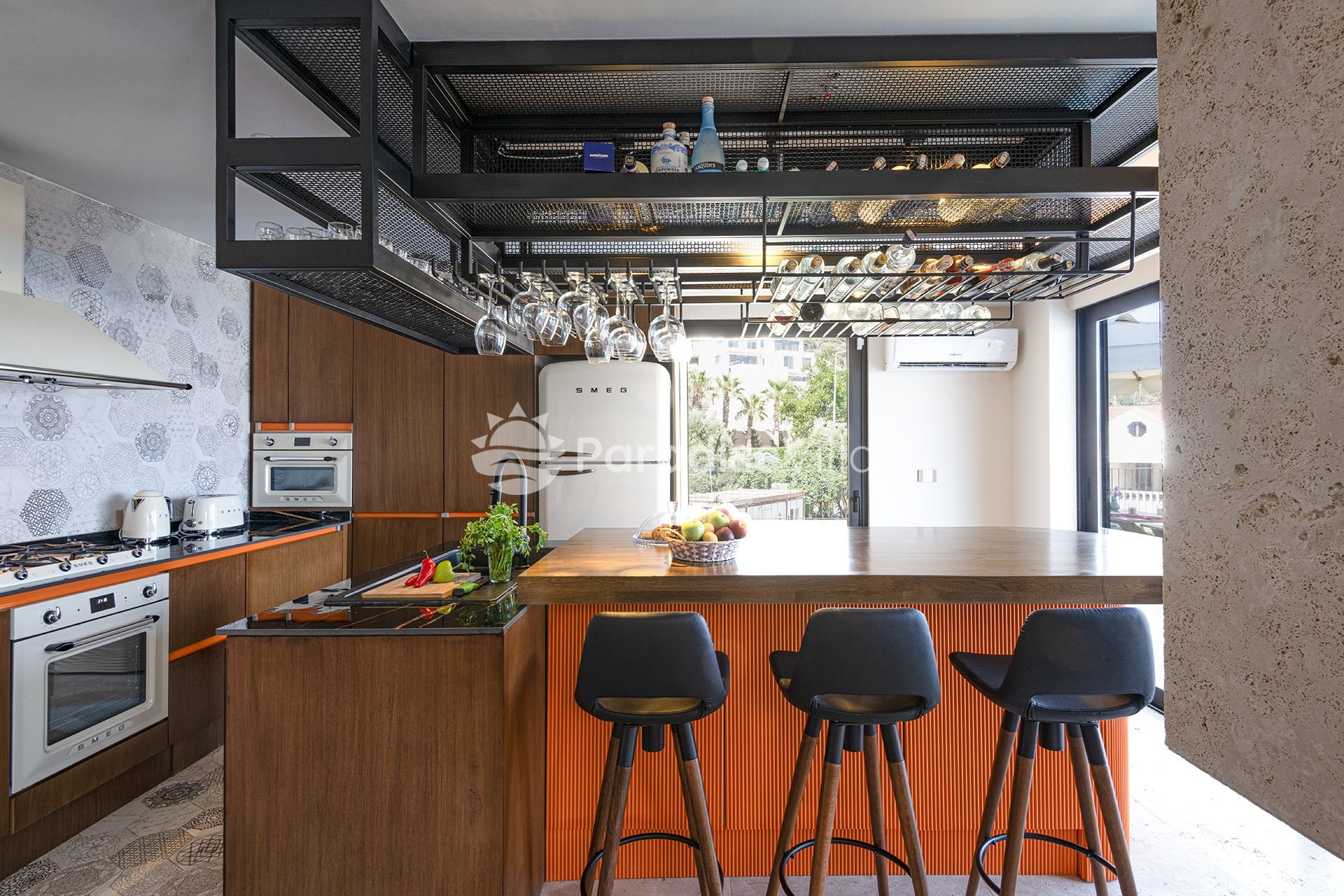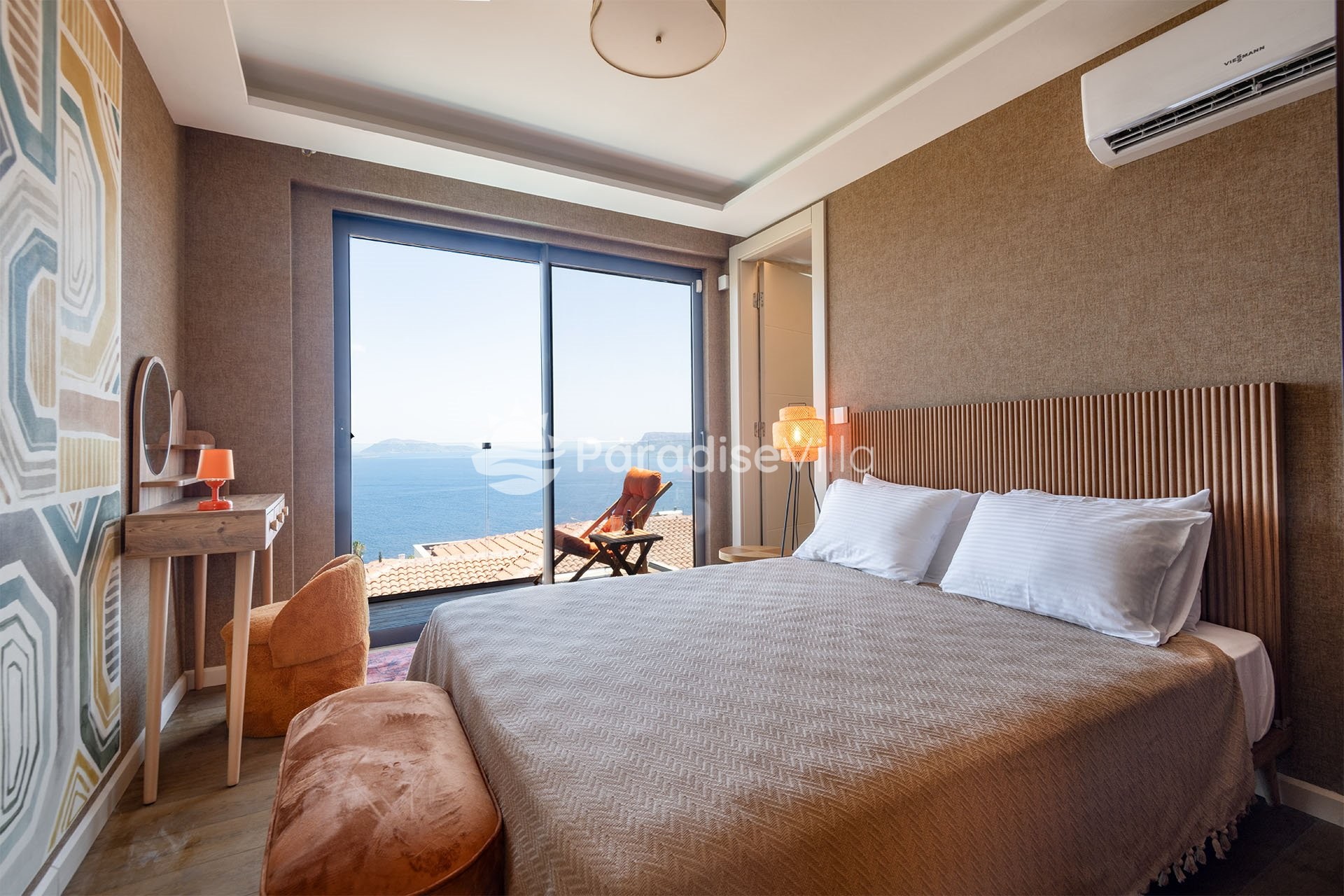 Retro Villa; 5 yatak odalı yapısı ile 10 kişilik kalabalık gruplar ve aileler için konforlu bir konaklama sunar. Çukurbağ Yarımadası’nda konumlanan bu lüks villada, Yunan adası Meis (Kastellorizo) manzarası eşliğinde ayrıcalıklı bir tatil deneyimi yaşayabilirsiniz. Denizin mavisinin sizin konforunuzla buluştuğu bu özel yaşam alanında; vintage style mobilya ve dekorasyon detaylarıyla sıcak ve karakterli bir atmosfer sunulmaktadır. Şömine, özel bar, spor salonu ve sinema odası ile tatilinizi sıradanın ötesine taşıyabilir, her anın keyfini çıkarabilirsiniz.