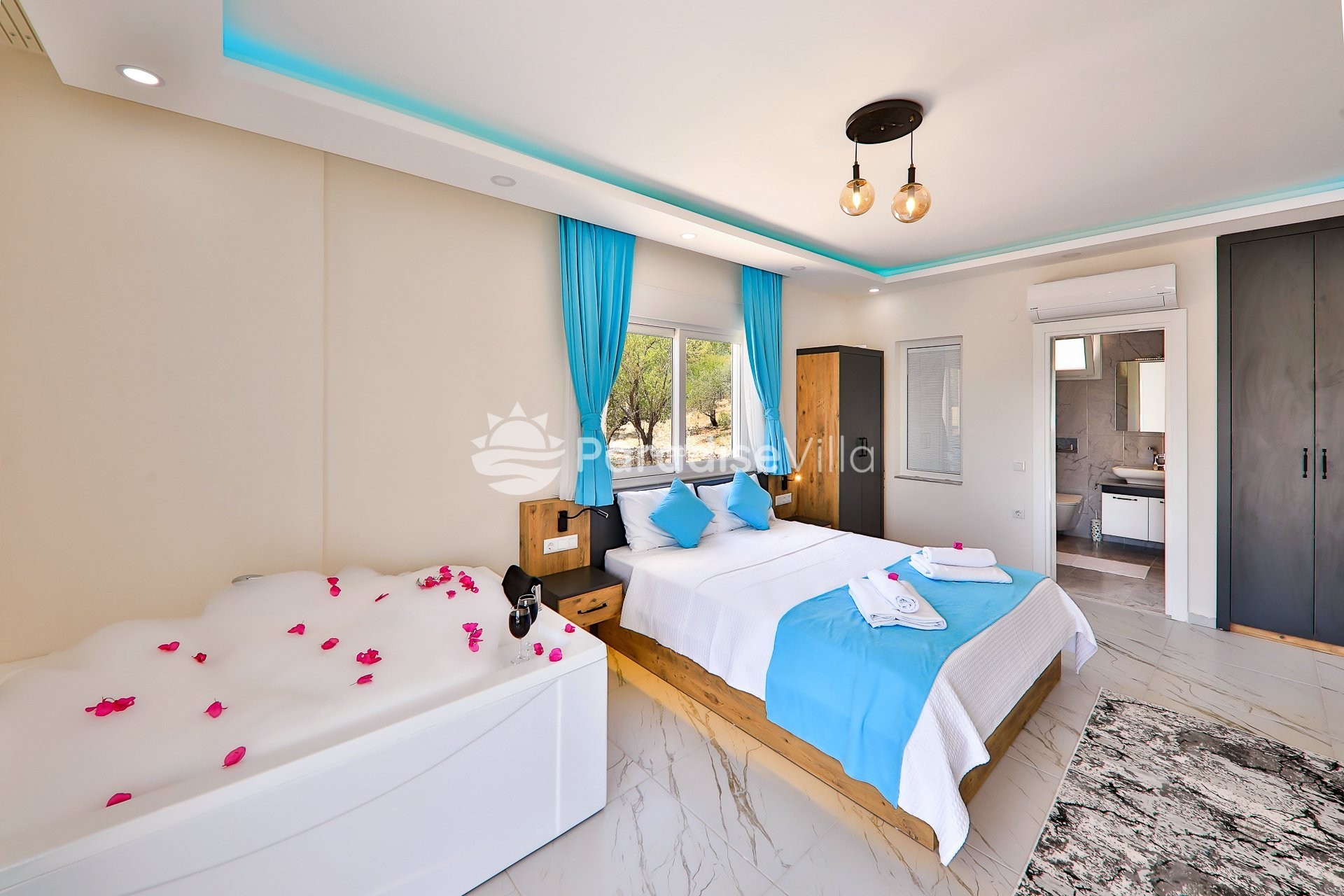 2. Yatak Odası : 1 çift kişilik yatak, Elbise dolabı, Komidin,Makyaj masası, Klima, Banyo, Jakuzi , Balkon