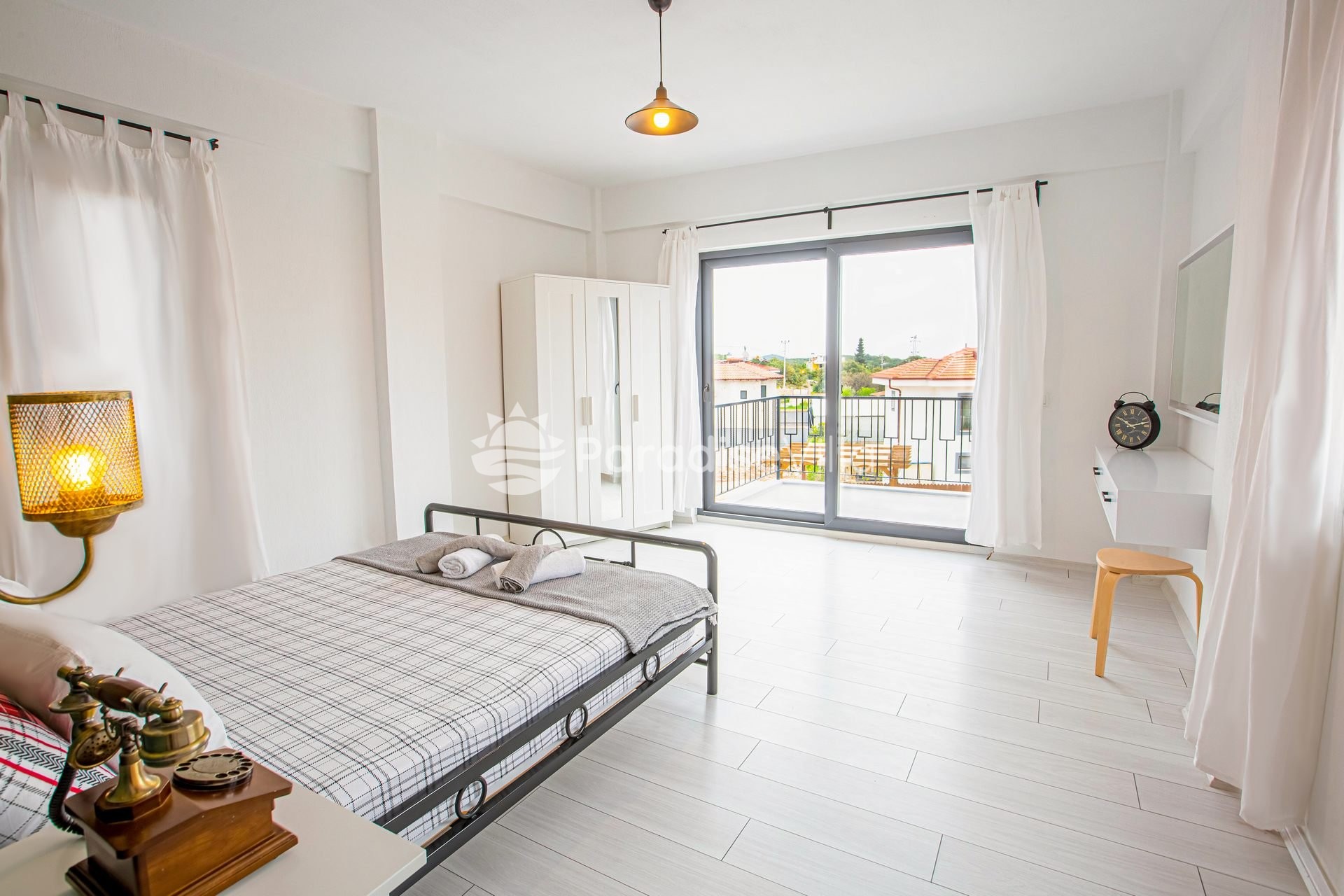 3. Yatak Odası: 1 adet çift kişilik yatak, elbise dolabı, komodin, klima, ortak banyo